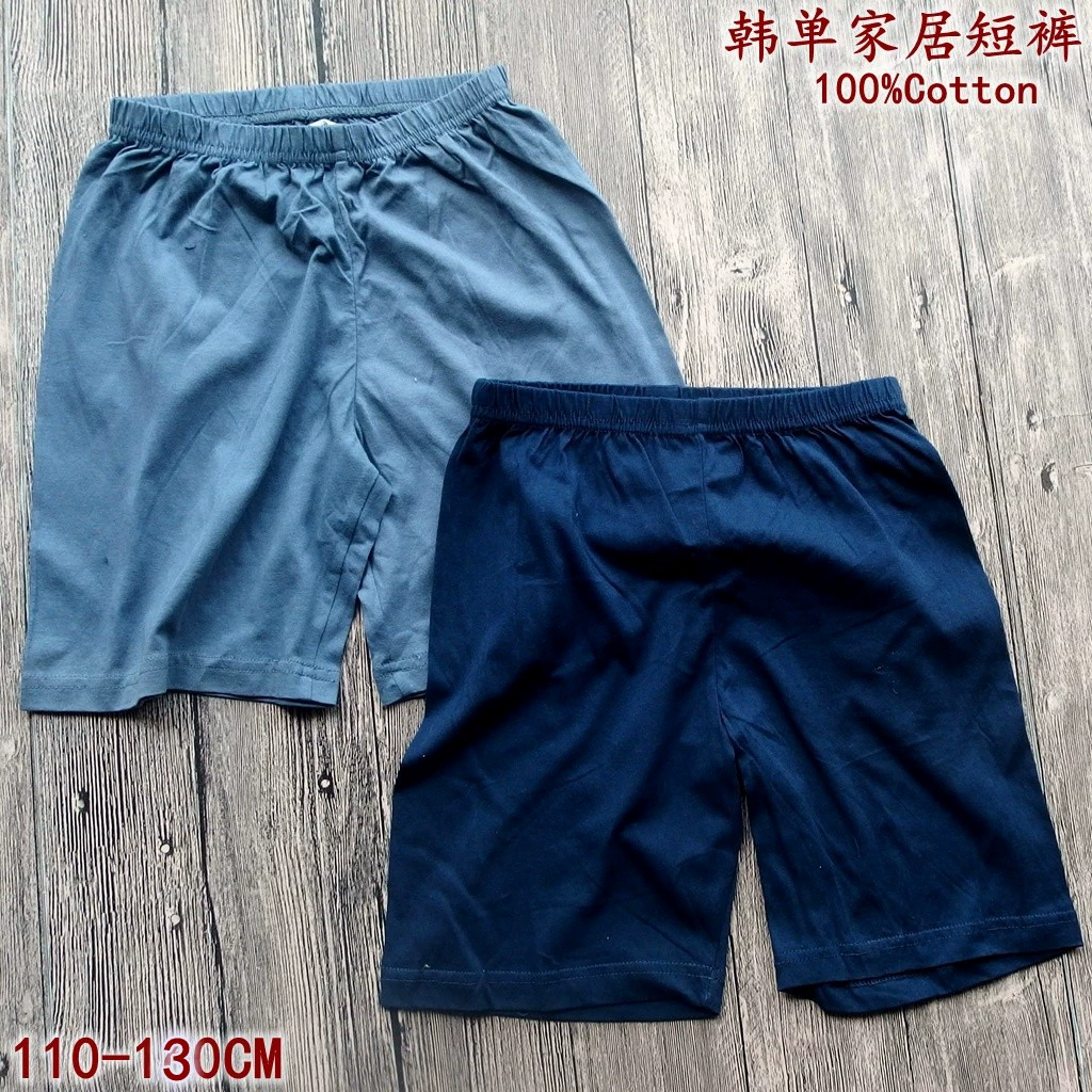 韩版外贸出口男童中童夏季纯蓝灰色舒适薄款纯棉睡裤家居五分短裤