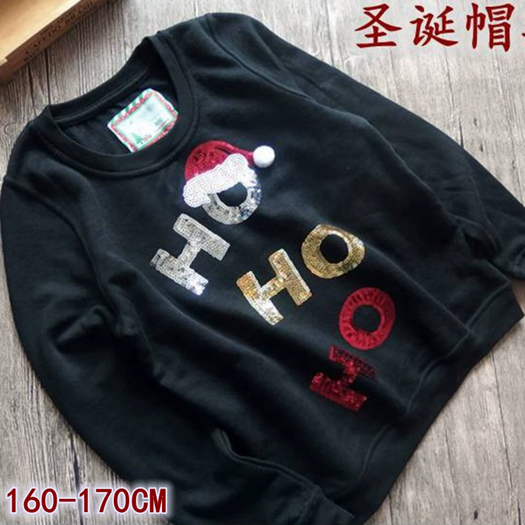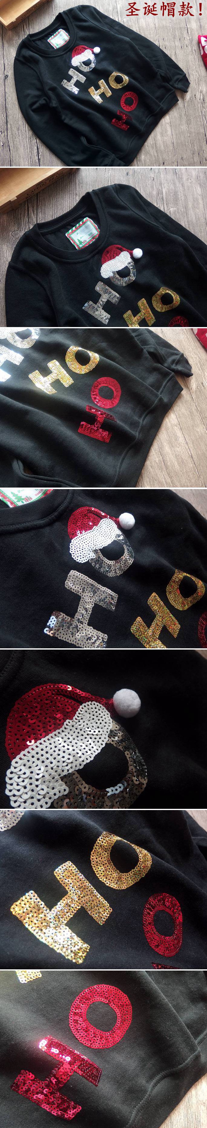 圣诞新年款男女大童青少年黑色纯棉加绒长袖套头卫衣出口外贸原单