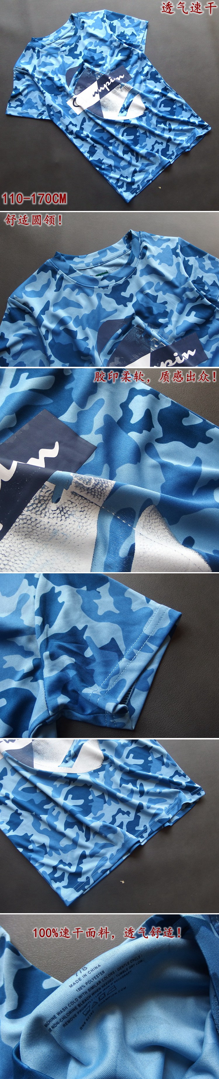 男童中大童夏季百搭蓝色迷彩速干透气运动休闲短袖T恤外贸原单