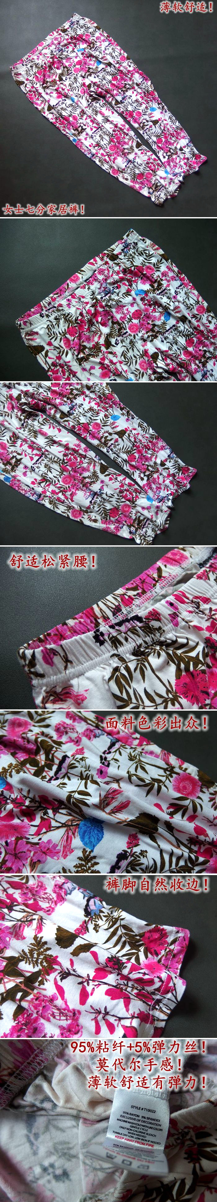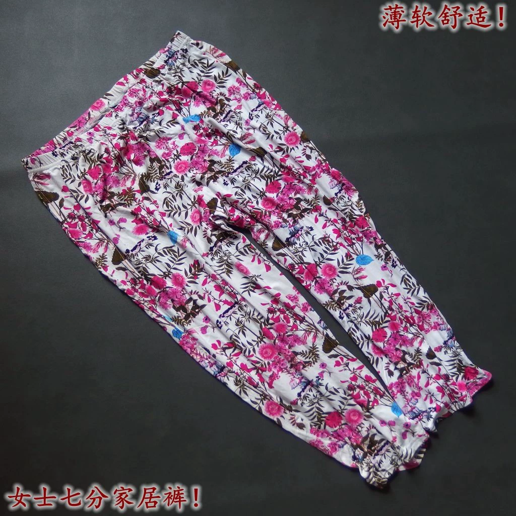 女士夏季舒适薄款莫代尔人棉宽松加肥防蚊七八分家居睡裤外贸原单