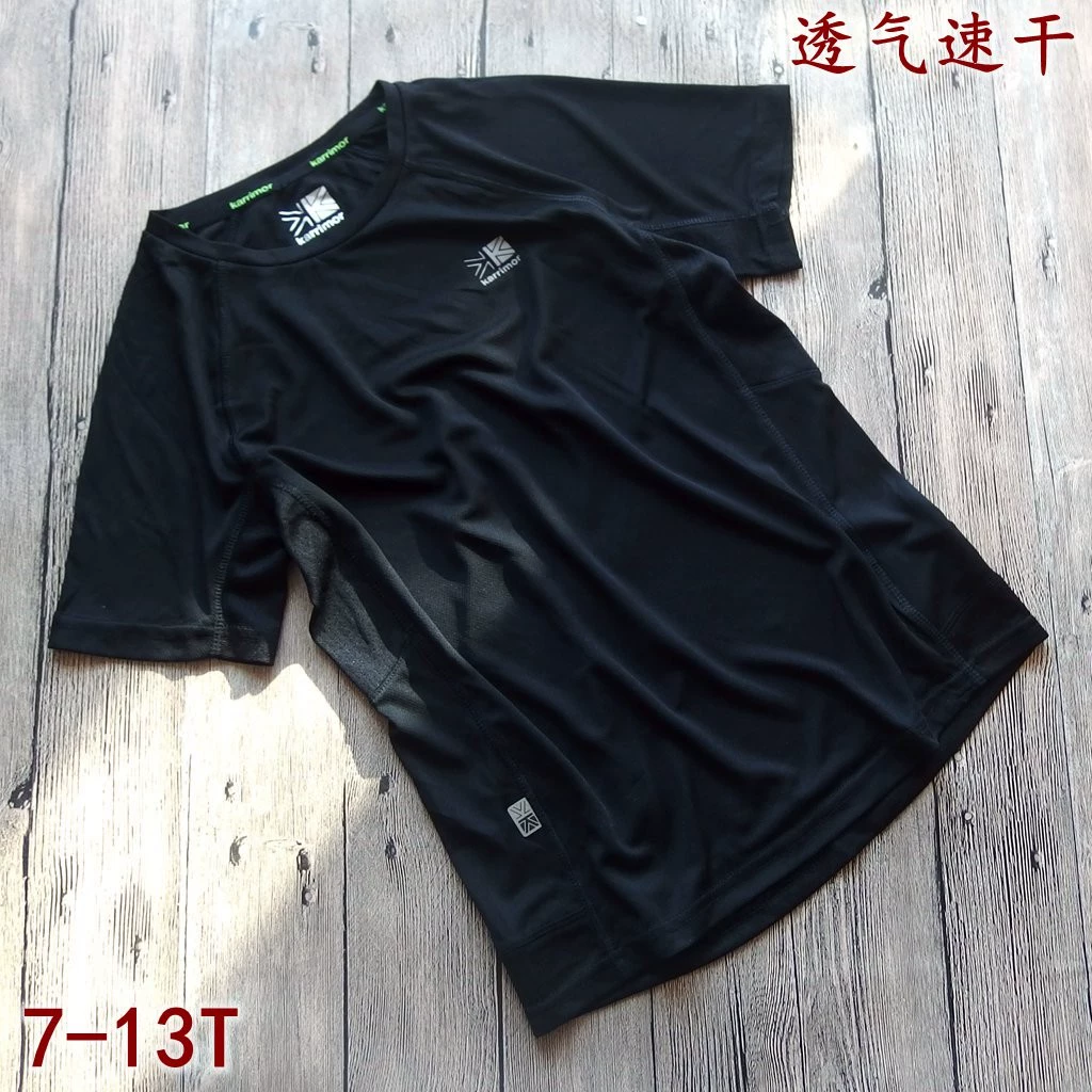 男童中大童夏季纯黑色速干排汗吸湿弹力运动圆领短袖T恤外贸原单