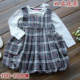 女童中童气质春秋纯棉双层灰白格子花苞背心裙公主马甲裙外贸原单