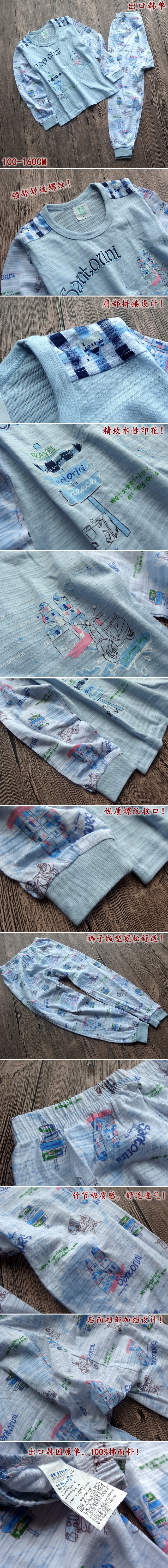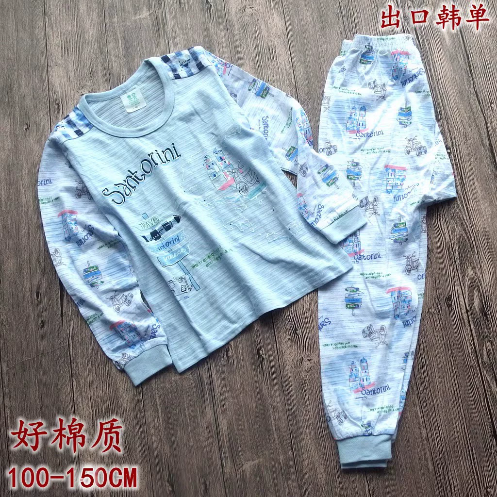 外贸原单男童中大童春秋舒适透气纯棉长袖上衣秋衣裤内衣睡衣套装