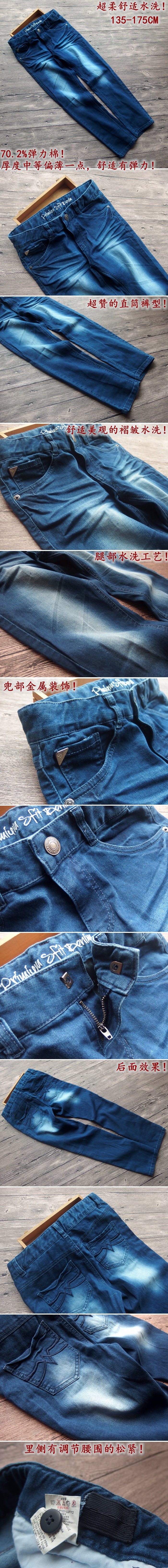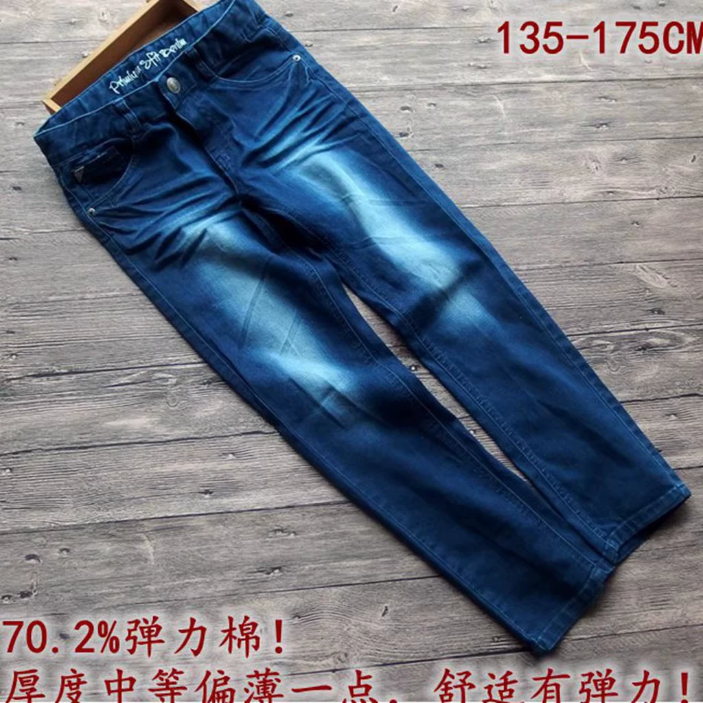韩国外贸原单女士中大童春秋款超柔水洗舒适纯棉直筒弹力牛仔长裤