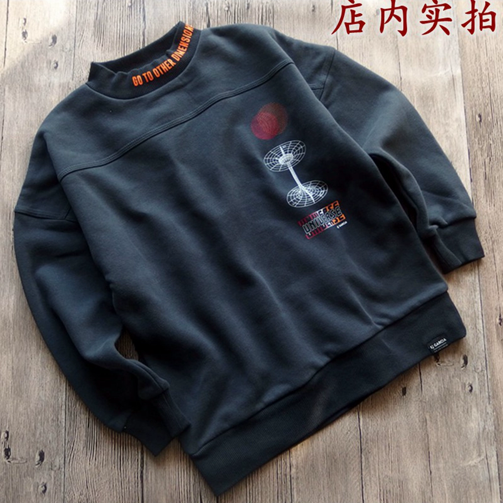 时尚出口外贸原单男童秋冬纯棉内加绒半高领厚实运动休闲长袖卫衣