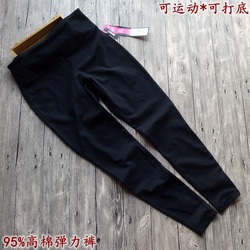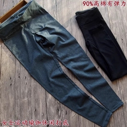 女士大童春秋精致灰黑色薄纯棉高弹力运动瑜伽收脚打底裤外贸原单