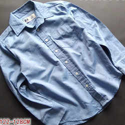 男童中童春秋休闲舒适纯棉牛仔纯浅蓝色翻领长袖衬衫上衣外贸原单