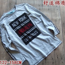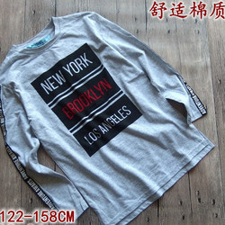 外贸原单男童中大童春秋灰色字母舒适纯棉圆领休闲长袖T恤打底衫