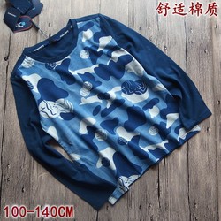 特价 外贸原单男童中大童春秋蓝色迷彩纯棉弹力圆领长袖T恤打底衫