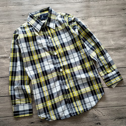 包邮男童中童春秋纯棉黄色格子翻领长袖休闲打底衬衣衬衫外贸原单