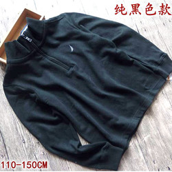 帅气纯黑色男童中童春秋纯棉毛圈立领半拉链套头长袖T恤外贸原单
