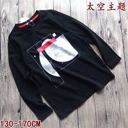 太空主题男童中大童春秋舒适纯棉黑色长袖圆领打底T恤上衣原单