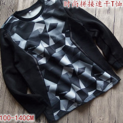 特价男童中大春秋时尚黑色拼接速干圆领长袖运动T恤韩国外贸原单