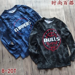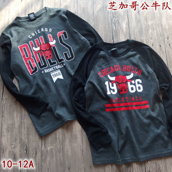 男童中大童春秋纯棉圆领运动篮球公牛洛杉矶长袖T恤出口外贸原单