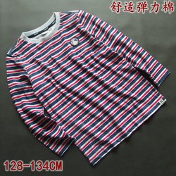 清仓特价出口外贸男童中大童春秋纯棉条纹休闲长袖圆领打底衫T恤