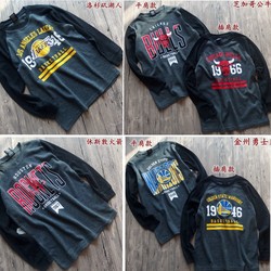 断码 男童春秋纯棉弹力圆领公牛勇士篮球队运动休闲长袖打底衫T恤