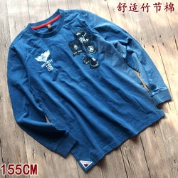 韩版男童大童春秋蓝色舒适透气纯棉圆领长袖T恤打底衫外贸原单